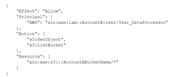 A which belongs to the retail company. The business partner company wants one of its 1AM users. User_DataProcessor. to access the files from its own AWS account (Account B).